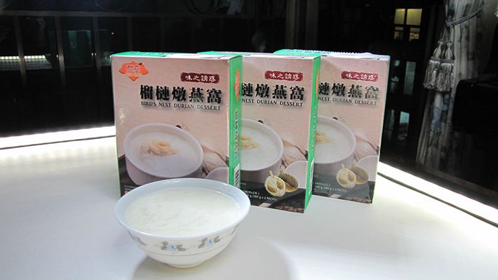 (1)本公司註冊君宜美食第一款面世的產品是榴槤燉燕窩,採用印尼上等官燕盞和樹上熟冰鮮金枕頭榴槤,由台灣有GMP 認証的食品加工廠監製以最先進的技術鎖住榴槤的香味100%送到你的味蕾,全無添加劑,冷凍保存,解凍後直接放入小窩煮沸便可食用,名為味之誘惑,對於榴槤愛好者實在是無可抗拒。